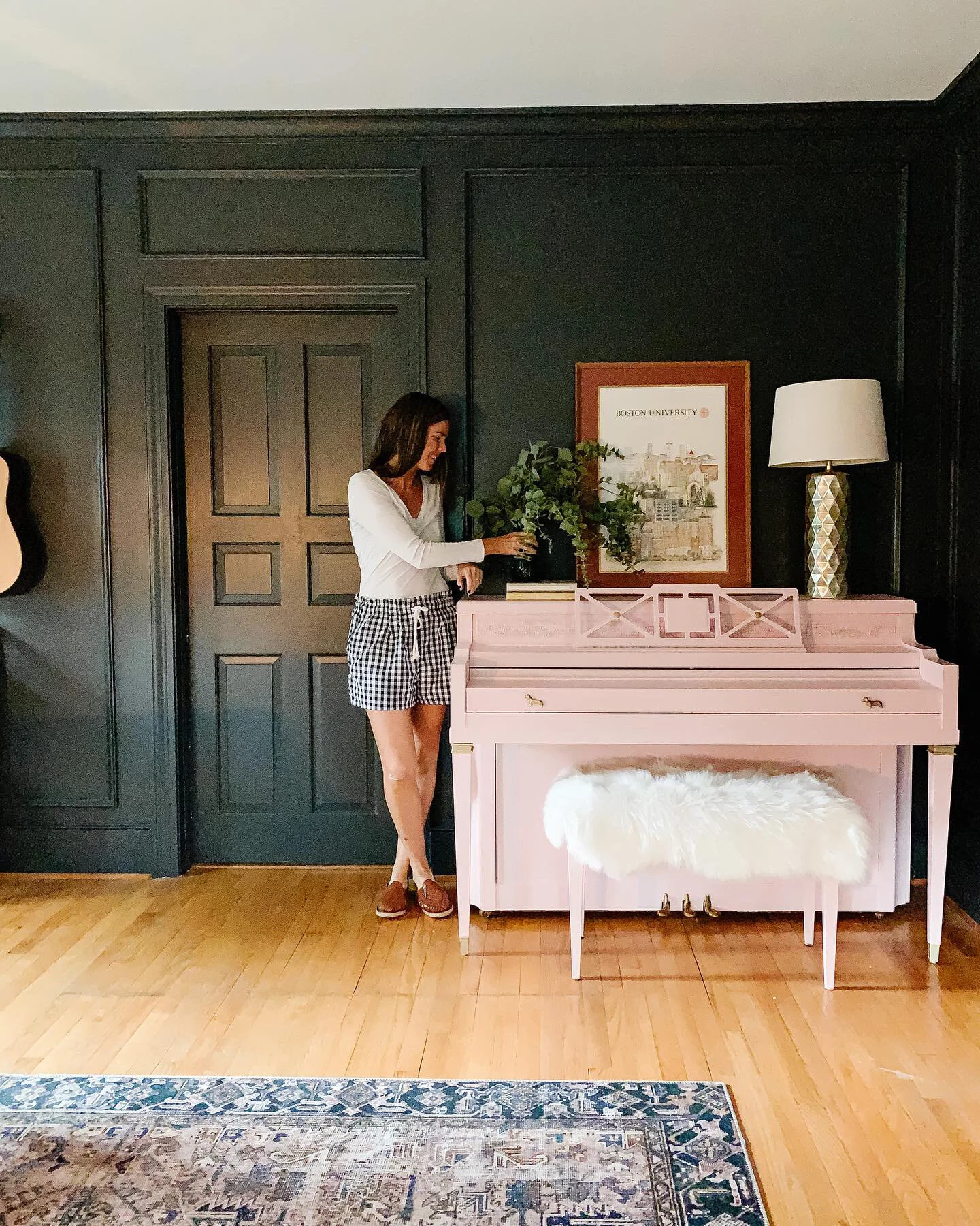 /Our piano has been painted a few times now…but I felt like the yellow piano did not fit with the room.
