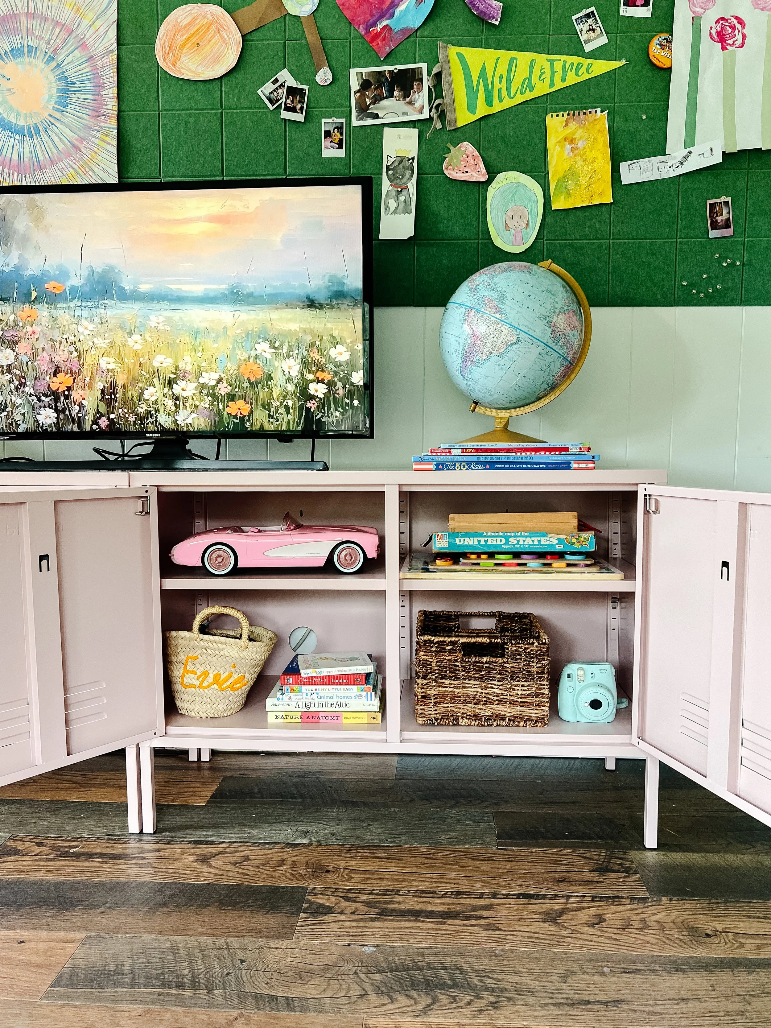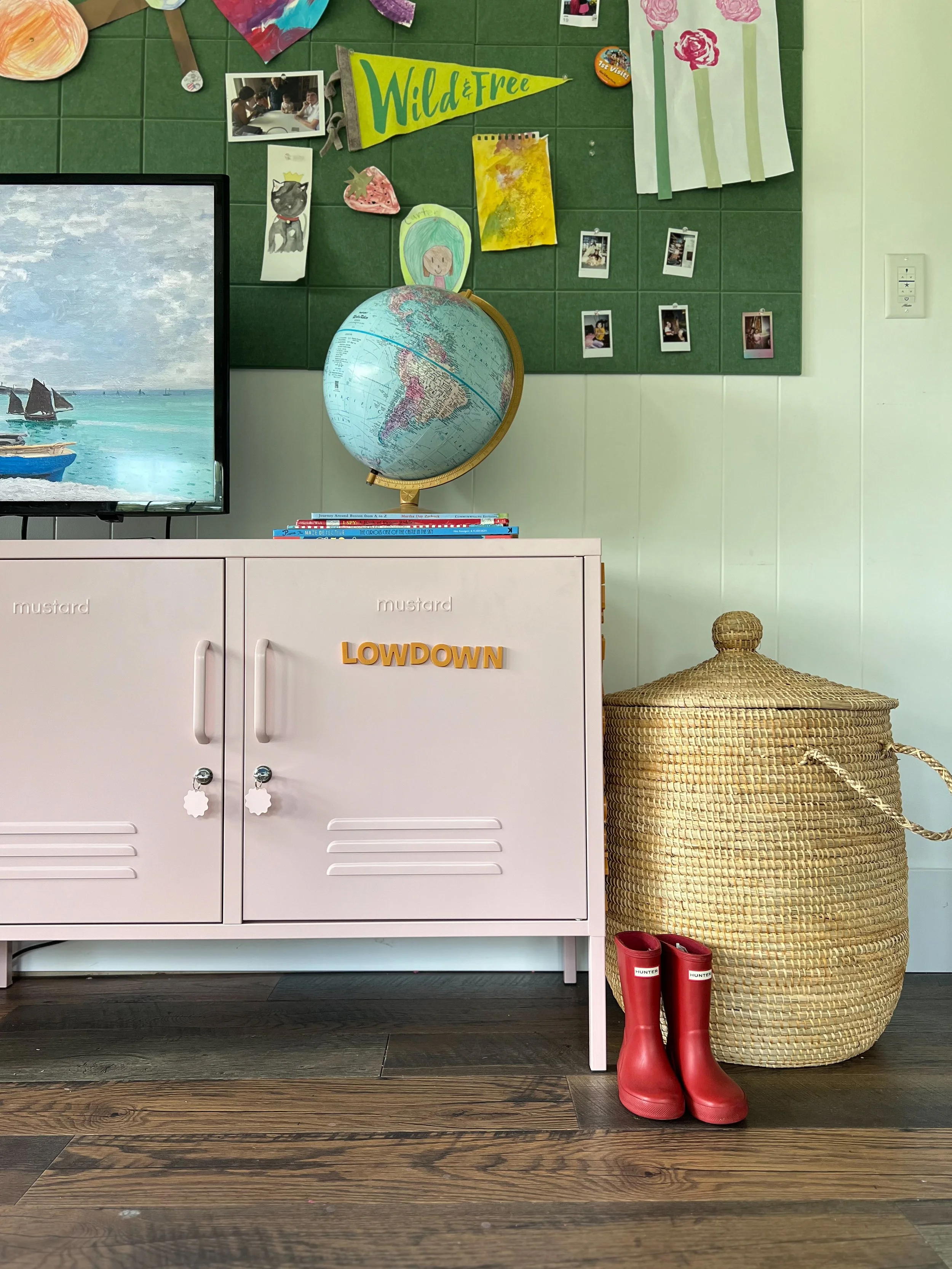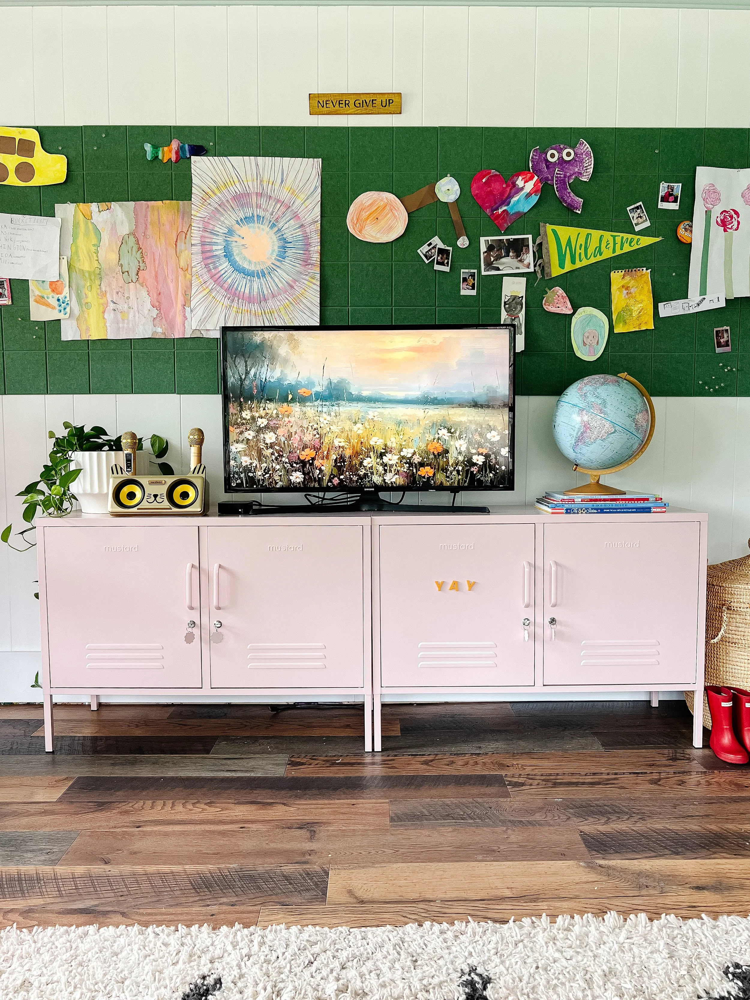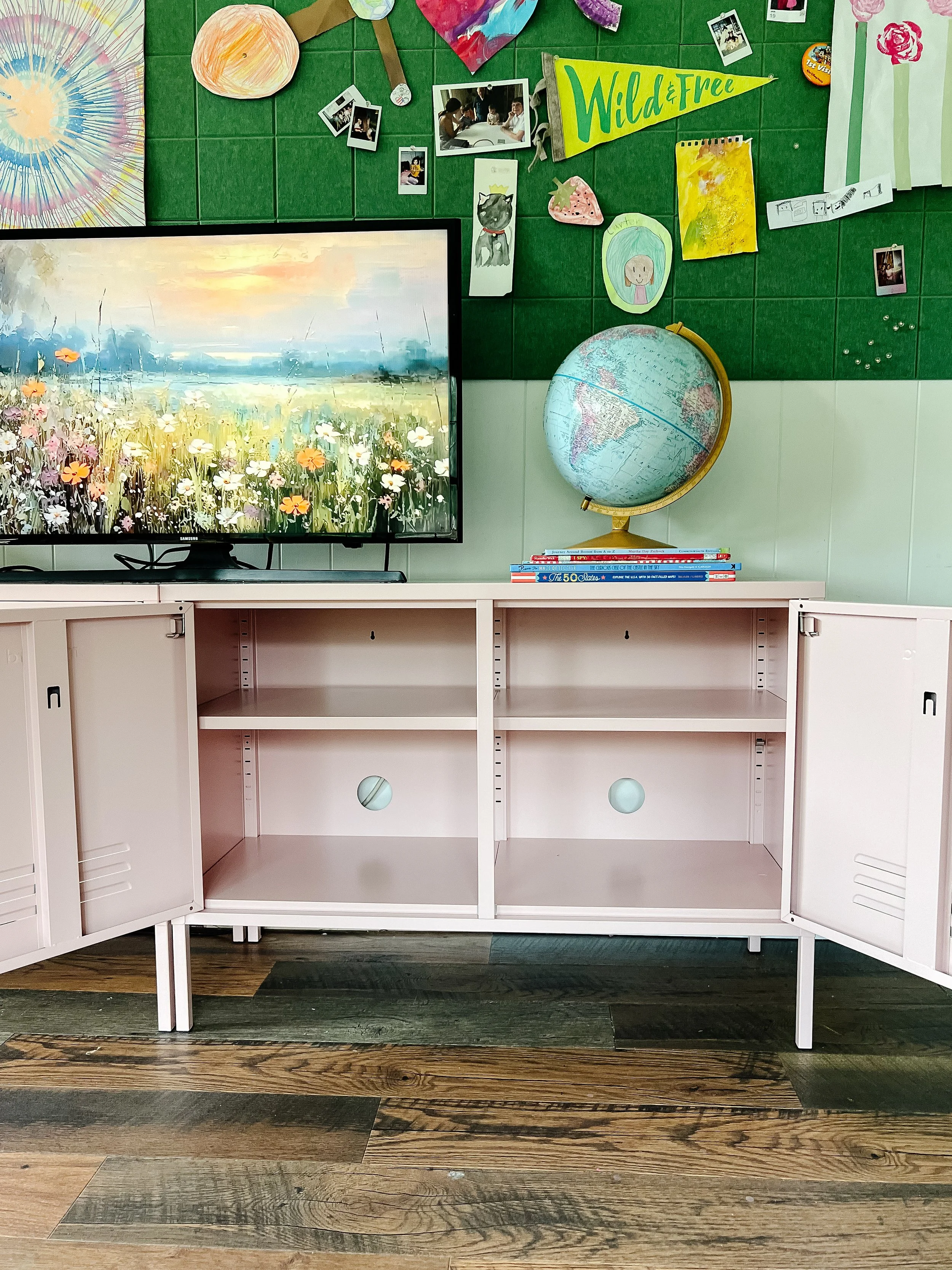 They are a female-founded business with the cutest well-made lockers. We went with two Lowdowns in blush because they make a great media cabinet with a space to plug in devices, but their new piece, The Standard is a similar option that I love.