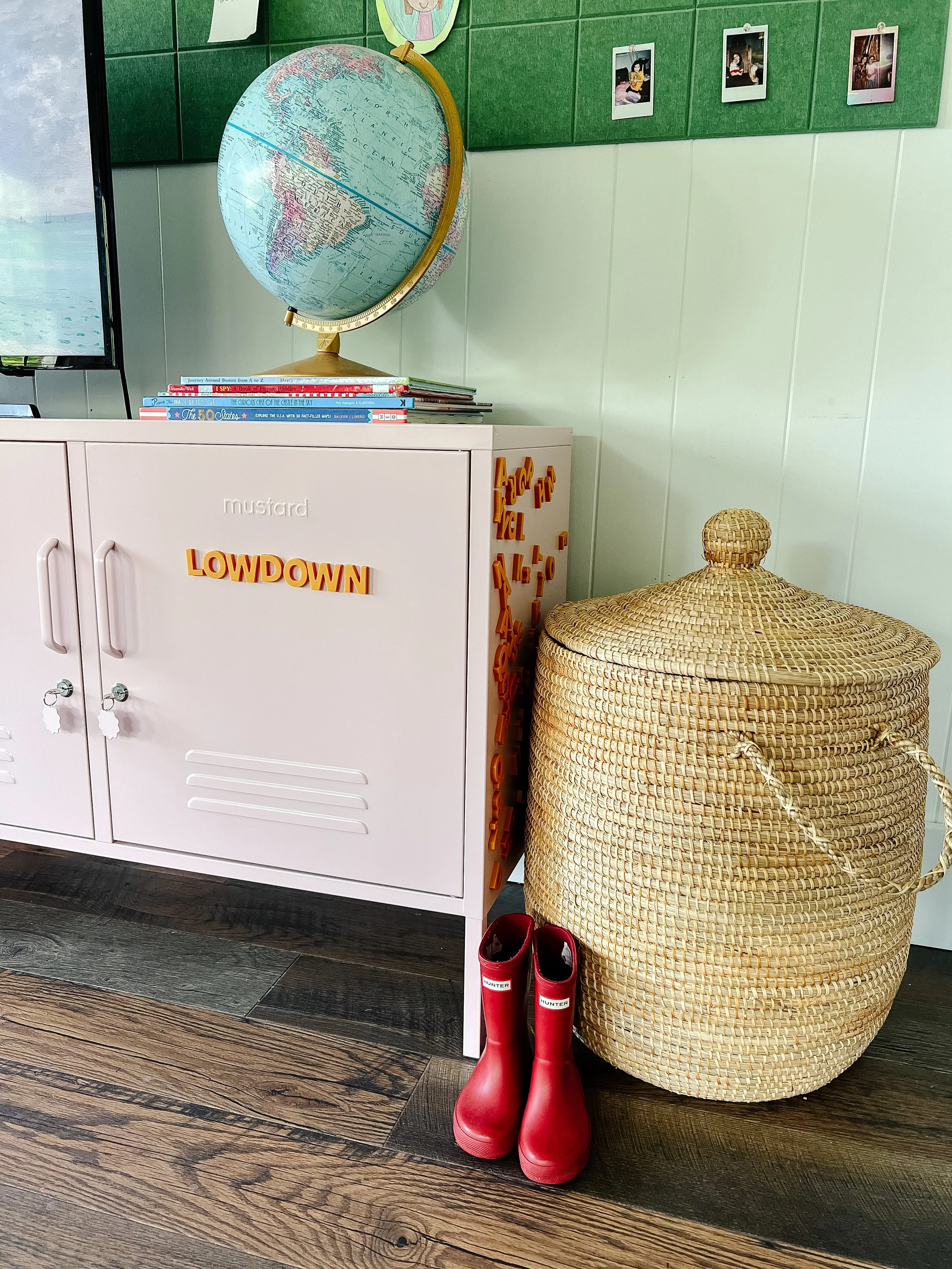 And how cute are the letters? The lockers are magnetic so you could add art, reminders…Here we also used these magnetic letters they sell by Word Bits.
